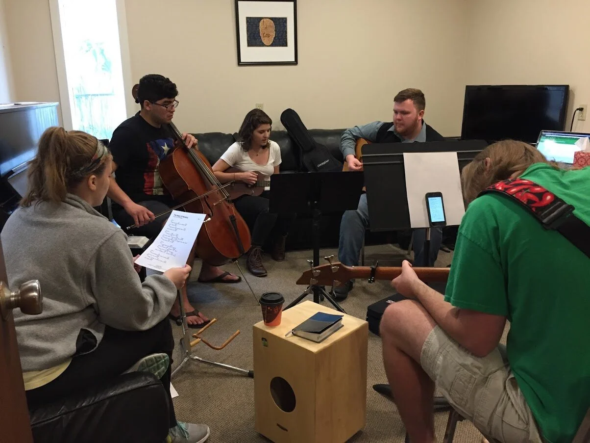 Play with other musicians with new friends in our dedicated music room full of instruments or learn guitar, bass, or vocals with free lessons.